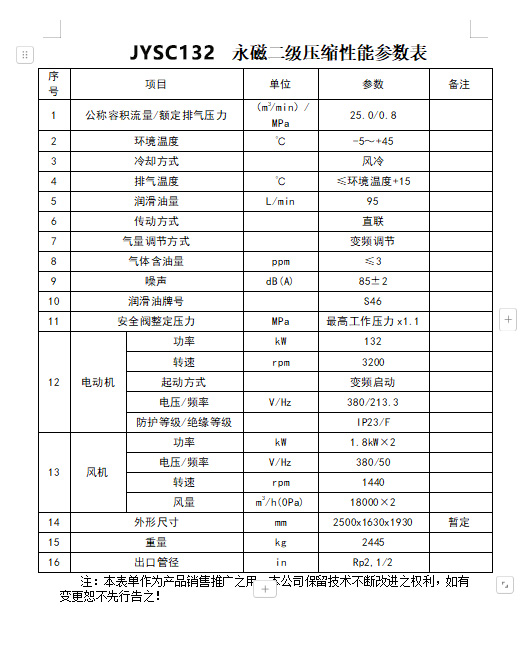 產品名稱:132kW 水平雙級直連永磁變頻空壓機 JYSC132